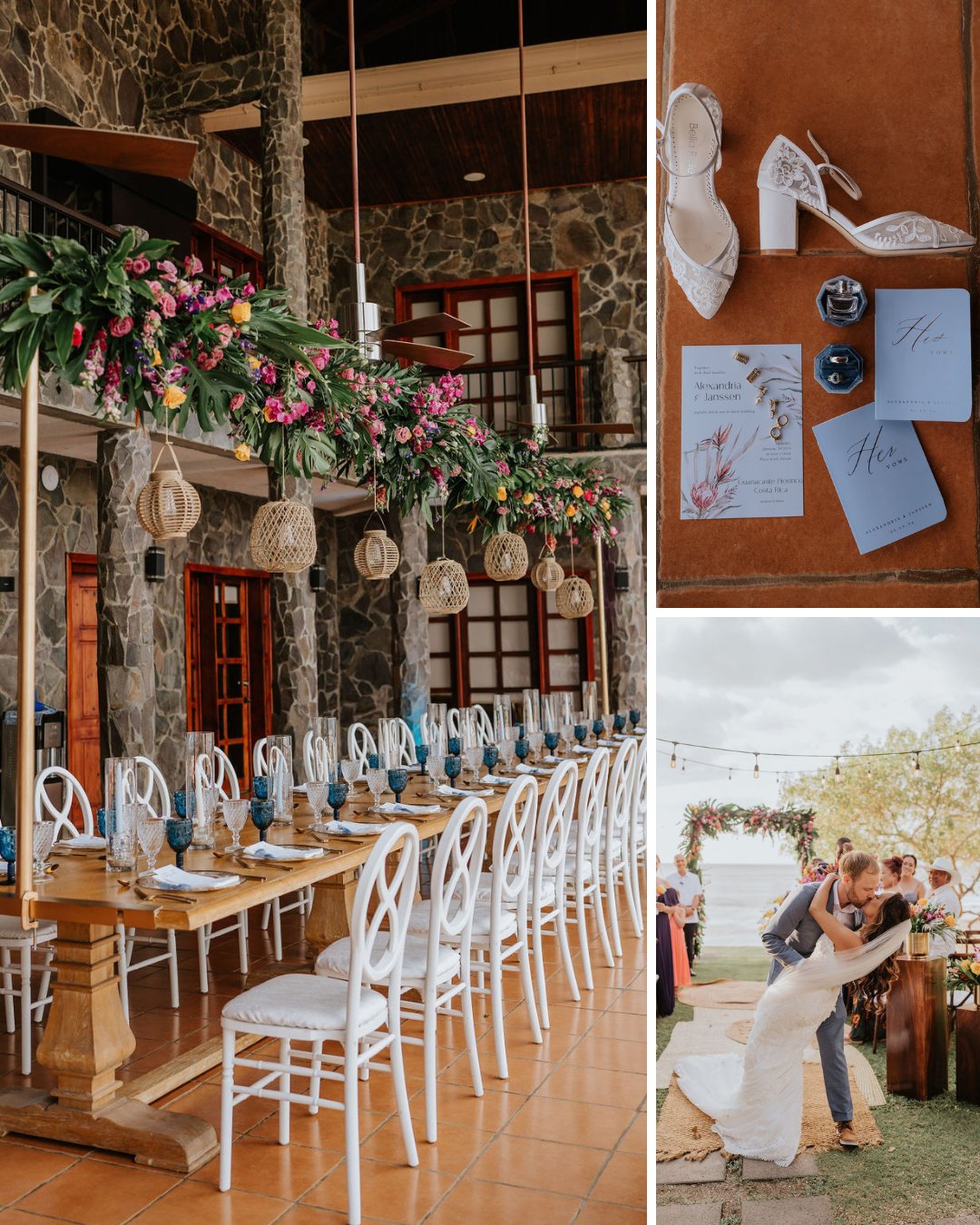 Some couples choose their destination based on postcard images or Instagram inspo. For college sweethearts with a love story over a decade long, Alexandria and Janssen’s choice came with a backstory. “Janssen had vacationed in Costa Rica with family when he was younger. He always had great things to say about his adventures,” Alexandria explains. But practicality played a role too: “We saw that we could stretch our budget further for 12 days (ceremony, reception + honeymoon) in Costa Rica versus 1 day in the States.”